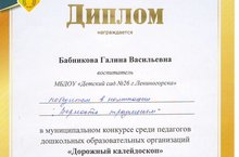 28 ноября на базе МБДОУ «Детский сад №28» прошел муниципальный конкурс «Дорожный калейдоскоп» среди воспитателей дошкольных образовательных учреждений.Наш воспитатель Бабникова Галина Васильевна стала победителем в номинации «Верность традициям». Поздравляем!!! Желаем ей новых творческих успехов и безопасных дорог.