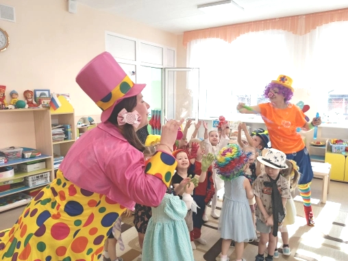 Первое апреля в нашем саду выдалось солнечным и тёплым - самое время для шуток и веселья! В этот день по группам детского сада отправились два весёлых гостя - озорной клоун Прошка и задорная Веселинка. Они решили устроить праздник для всех ребят: от самых маленьких до старших дошколят.