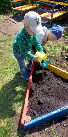Ранний дошкольный возраст является началом трудового воспитания, что является важнейшей составляющей успешности будущей взрослой жизни. С раннего детства нужно воспитывать в детях терпение, настойчивость и трудолюбие. Тогда можно многого достичь. Воспитатели вместе с детьми наполнили землей формы для посадки цветов.