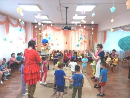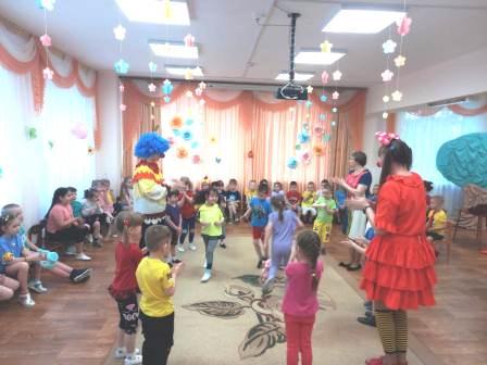 В гости к нашим воспитанникам пришли клоуны Тёпа и Веселинка. Они вместе с детьми пели и танцевали, устроили для ребят весёлые конкурсы и игры. День смеха прошел шумно и весело, все дети получили максимум энергии и радости.