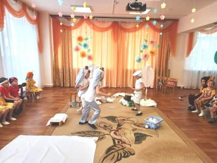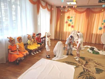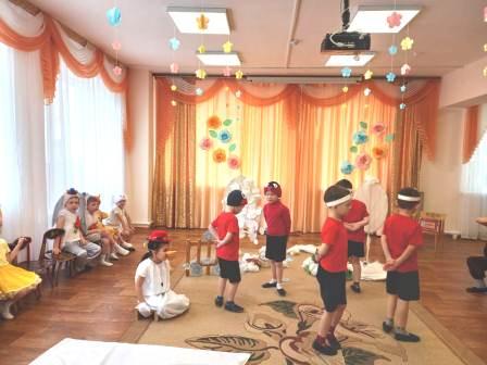 Во всех группах прошли занятия с элементами театральной деятельности. Каждая группа показала свою театральную сказку. Разнообразие костюмов, использование театральных атрибутов доставили детям радость, веселье, яркие впечатления.