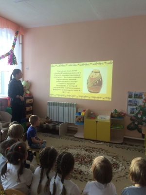 Воспитание патриотических чувств у детей - одна из основных задач дошкольного учреждения. Приобщая детей к истории и культуре русского народа с детьми средней группы проводили беседы "Что такое Родина", "Символика России". Поддерживая познавательный интерес через дидактические игры "Кто где живет?", "Что лишнее?", "Моя семья" дети продолжали знакомиться с национально-культурными традициями и природой России.