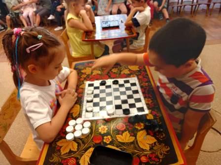 В детском саду прошел шашечный турнир "Юный шахматист". Дети старшей и подготовительной к школе групп приняли участие в финале шашечного турнира. Отборочный тур проходил внутри групп. Были выбраны лучшие игроки, которые представили свои группы и финале. По результатам туринира определился победитель - Денис Е. Руфина Ш., Ислам М., Александра Ч. достойно сражались и получили звание участников шахматного турнира. Молодцы!