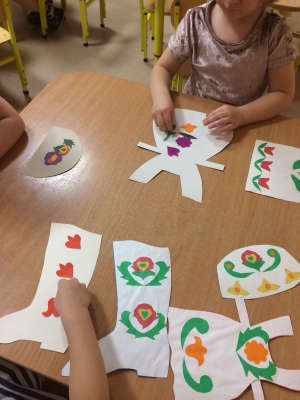Во время реализации третьей недели проекта «Искусство» во 2 младшей группе с детьми была просмотрена презентация «История Матрешки», также было проведено чтение народных сказок. Познакомились с татарской народной одеждой, головным убором. Расширили и активизировали словарный запас: калфак, тюбетейка, татарский орнамент, играли в дедактическую игру «Татарский орнамент», также была проведена аппликация, лепка «Колобок». Дети были заинтересованы национальной культурой русского и татарского народа. Итоговым мероприятием стал показ сказки «Заячья избушка».