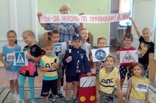 Подготовительная к школе группа – играли в дидактические и подвижные игры, завершили неделю квест-игрой «В поисках пропавших знаков»; провели акцию «Автокресло – детям!, с вручением информационных листовок по правилам безопасной перевозке детей.