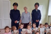 В подготовительной группе прошёл Урок безопасности, на который были пригнлашены председатель первичного отделения АО ТРО ВДПО Лениногорского отделения Рустем Рифкатович Зайнагов и электрик АПС МБО ТРО ВДПО Виктор Николаевич Морозов.. Рустем Рифкатович и Виктор Николаевич напомнили детям правила пожарной безопасности, как вести себя в ситуации пожара, куда звонить. А также познакомили с огнетушителями и с правилами их пользования. Встреча прошла интересно, дети задавали много вопросов, и получали исчерпывающие ответы. Закончилась встреча вручением подарков и общим фото. Попрощавшись с пожарными, дети, полученные впечатления выразили рисованием на тему «Пожар! Звони 01».