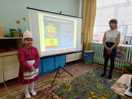 Туган тел һәм Халыклар елы кысаларында, урта төркемдә ата-аналар белән берлектә “Туган телем” дигән танып-белү дәресе узды. Гаврилова Василиса гаиләсе тәрбияләнүчеләрне туган теле, шулай ук Чуваш Республикасының дәүләт символикасы, милли киемнәре, чуаш халкының гореф-гадәтләре, йолалары белән таныштырды. “Чухласа ил” һәм “Тили-рам?” хәрәкәтле чуаш уеннары уйнадылар. Балалар бик күп яңа һәм файдалы нәрсәләр белделәр.