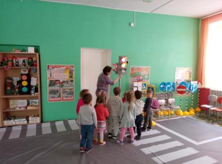 1 нче кечкенә төркем - уен формасында юл аркылы чыгу кагыйдәләрен, светофорның төп сигналларын ныгыту;