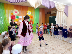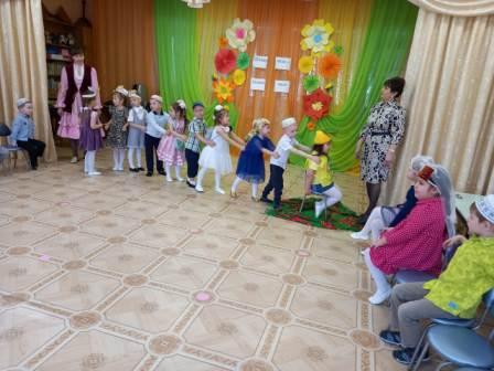 Дети средней и старшей группы читали стихотворения на татарском языке, пели песни «Бакчабыз», «Яз килгән», танцевали парный татарский танец, играли в игры «Күрсәт әле, үскәнем», «Яулык салыш».