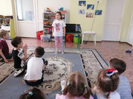 Урта һәм зур төркем балалары татар телендә шигырьләр укыдылар, «Бакчабыз», «Яз килгән» җырларын җырладылар, парлы татар биюен биеделәр, «Күрсәт әле, үскәнем», «Яулык салыш»уеннары уйнадылар.
