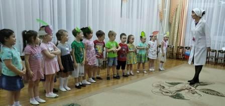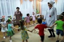 В средней группе прошло развлечение "В гостях у доктора Айболита" . Дети с большим удовольствием встретили гостя - доктора Айболита, выполнили его задания, делали зарядку, говорили о пользе витаминов, отгадывали загадки. Целью нашего развлечения было развитие силы, быстроты и ловкости детей. Ребята обещали Айболиту соблюдать правила гигиены, побольше гулять, дышать свежим воздухом, не болеть и питаться витаминами.
