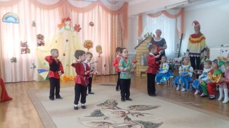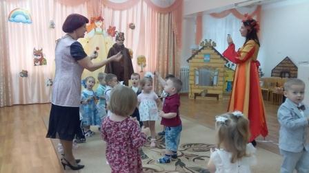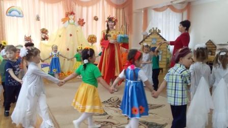 В детском саду прошли осенние утренники. В первой младшей группе в гости к детям приходили Медведь, Лисичка и волшебница Осень, которая принесла свои богатые дары. Во второй младшей группе гостями были Осенняя тучка и Солнышко. В средней группе дети отправились в волшебную страну, где побыли в роли грибочков, подсолнухов и капелек. В старшей группе дети погуляли на развеселой осенней ярмарке. А воспитанники подготовительной к школе группы поставили театрализованное представление "Морковкина свадьба".