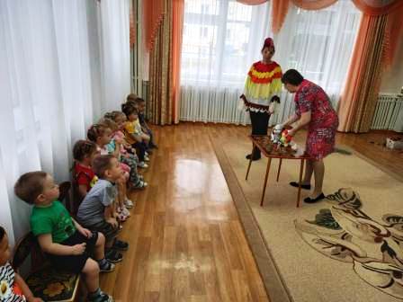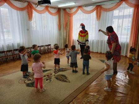 За окном холод, ветер и совсем не летняя погода, но нашим дошколятам скучать некогда. Сегодня к нам в детский сад заглянул весёлый Петрушка со своим «волшебным» сундучком. Малыши первой младшей группы с большим удовольствием веселились, играли с мячом, колокольчиками, играли в оркестре на деревянных ложках, танцевали, заряжались положительными эмоциями и хорошим настроением.