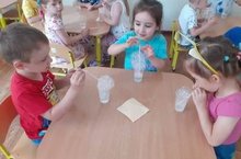 В детском саду был проведен День игр с водой и мыльными пузырями. С детьми 2 младшей группы узнали из чего делаются мыльные пузыри. Устроили конкурс на самую большую пену "Мыльная пена". На прогулке рисовали "мыльные пузыри" на песке. Делали эксперементы: окрашивали воду в разные цвета. Веселый и познавательный получился у нас праздник.