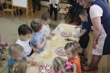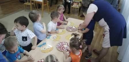 В первой младшей группе родители и дети узнали о росписи народной игрушки и разукрасили заготовки.