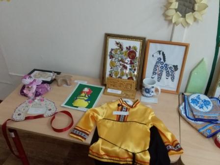 В рамках проекта "Дружба народов" в детском саду организована выставка совместного творчества детей и родителей "Народные промыслы".