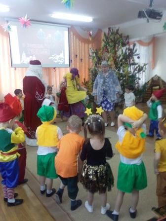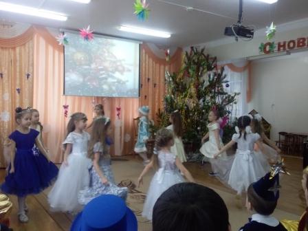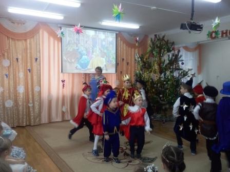 Дети подготовительной группы побывали на сказочном балу в гостях у Золушки. Дети старшей группы «встречали» Новый год в аэропорту. Средняя и вторая младшая группы отправились в волшебный лес. Малыши первой младшей группы превратились в цыплят, пели песни и танцевали.