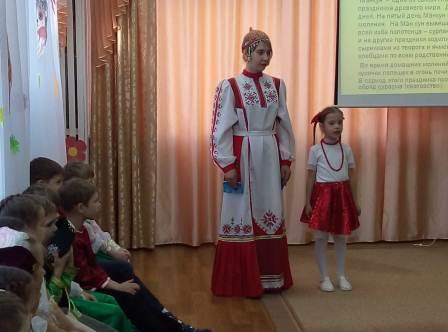 В подготовительной к школе группе прошло мероприятие совместно с родителями «Путешествие по России». В гости к детям пришли представители русского, татарского, мордовского, чувашского и башкирского народов. Дети вместе с родителями приготовили презентации по культуре разных народов и поделились своими знаниями друг с другом.