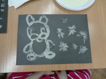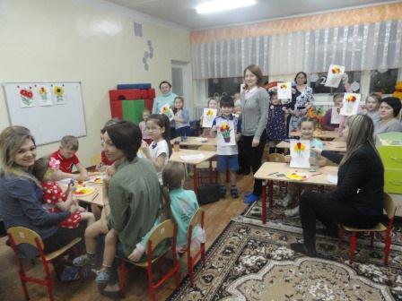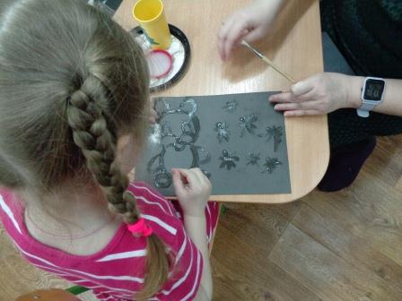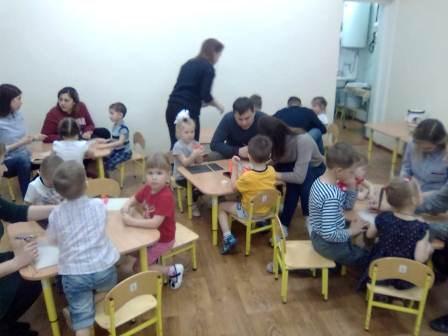 В первой младшей группе дети и родители выполняли аппликацию без ножниц и клея, во 2 младшей группе были сделаны атрибуты к теневому театру, и проиграны сказки. Дети средней группы вместе с родителями с удовольствием рисовали зимние пейзажи нетрадиционным способом и материалом - манкой. В подготовительной группе дети и родители создали красивые композиции из цветов с помощью гофрированной бумаги