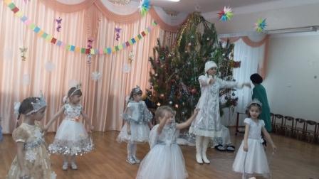 Воспитанники детского сада заранее готовились к встрече с Дедом Морозом и Снегурочкой. Подготовка началась задолго до наступления праздников. Воспитатели с детьми разучивали стихотворения, проводили беседы на тему Нового года, новогодних традиций. Музыкальный руководитель разучивали с детьми песни, хороводы и танцы. Сотрудники ДОУ провели огромную работу по оформлению групп и музыкального зала. С 26 по 28 декабря в детском саду состоялись Новогодние утренники. Все дети пришли на утренник нарядные, весёлые, в карнавальных костюмах и с нетерпением ждали новогоднего чуда, и их надежды оправдались. С самого начала представления сказочные герои увлекли малышей в волшебный мир сказки и волшебства, дети смогли окунуться в праздничную атмосферу приключений. С появлением Деда Мороза начался настоящий праздник с песнями и танцами, хороводами и играми. В конце утренника все дети получили долгожданные подарки от Деда Мороза и Снегурочки. Праздник доставил всем присутствующим радость и хорошее настроение.