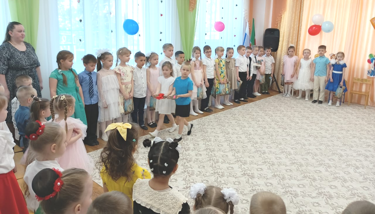 Торжественная линейка, посвящённая детям - выпускникам подготовительной к школе группе. Выпускников поздравили все дети детского сада. Рассказали стихи, станцевали и спели, ну и конечно вручили подарки.