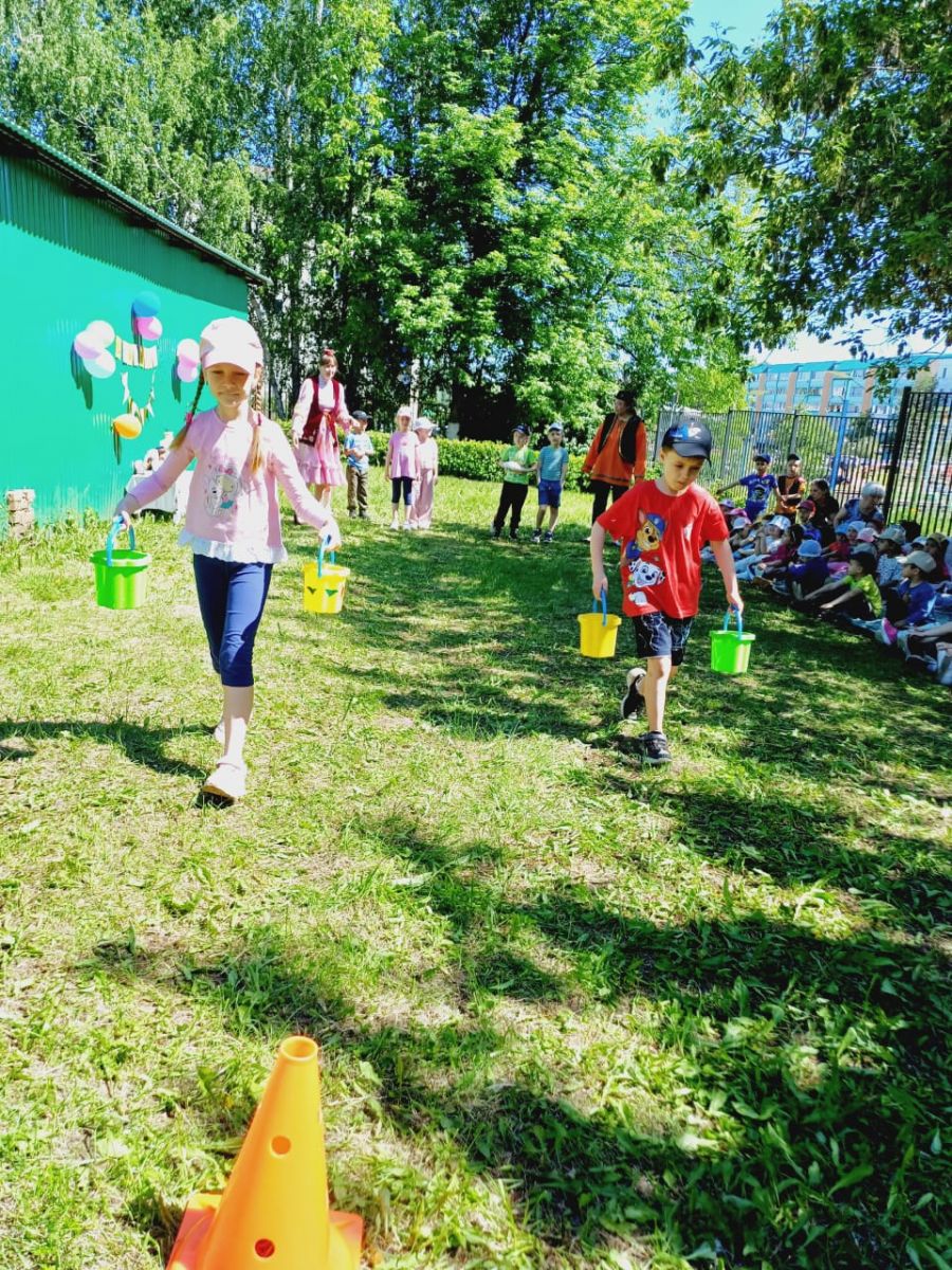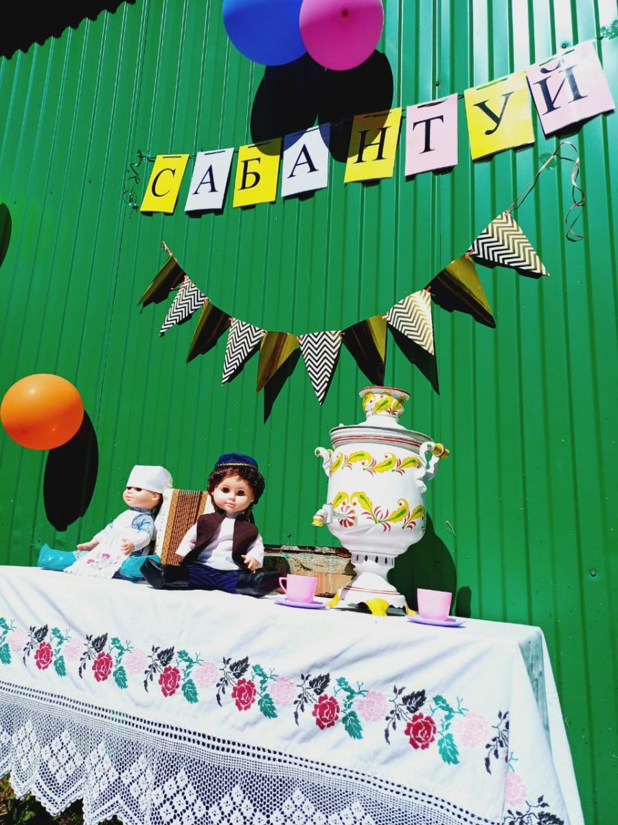 На протяжение всего праздничного мероприятия звучала татарская плясовая музыка. Вместе с Батыром провели с детьми весёлые игры-соревнования: "Скачки на лошадях", "Перенеси яйцо в ложке", "Разбей горшок", "Пронеси воду в ведерках". Воспитанники смогли продемонстрировать свою силу, ловкость, смекалку.