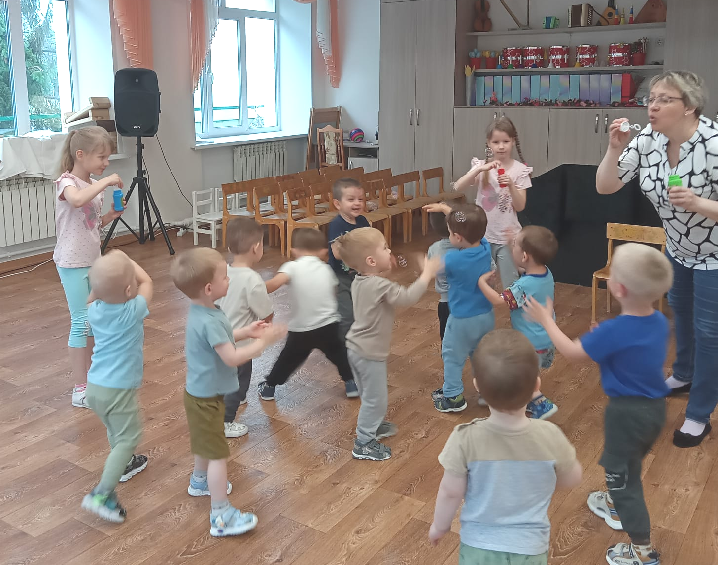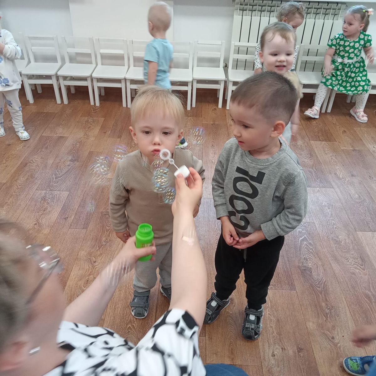 Летящие по воздуху, переливающиеся всеми цветами радуги прозрачные шары - что это? Конечно, каждый знает ответ – мыльные пузыри. Эта забава известна с давних времен и привлекает как детей, так и взрослых. Вот и в нашем детском саду для детей первой младшей группы прошло развлечение "Праздник мыльных пузырей". Дети играли в подвижные игры "Надувайся пузырь", "Солнышко и дождик", Поймай!", танец-игру "Если нравится тебе". Очень понравилась подвижная игра "Мыльные пузыри", где дети сами превратились в летящие мыльные пузыри. В завершении они с радостью запускали пузыри и любовались их красотой и разнообразием.