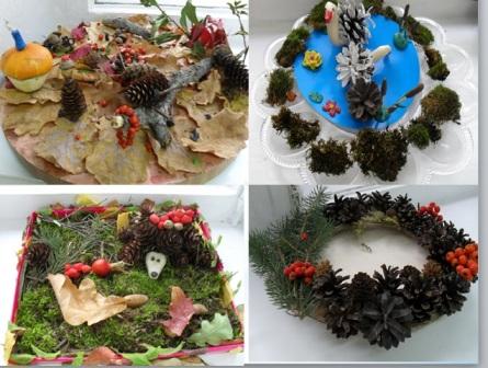 В выставочном зале детского сада организована выставка осенней тематики "Поделки из природного материала", на которой представлены совместные работы детей и родителей.