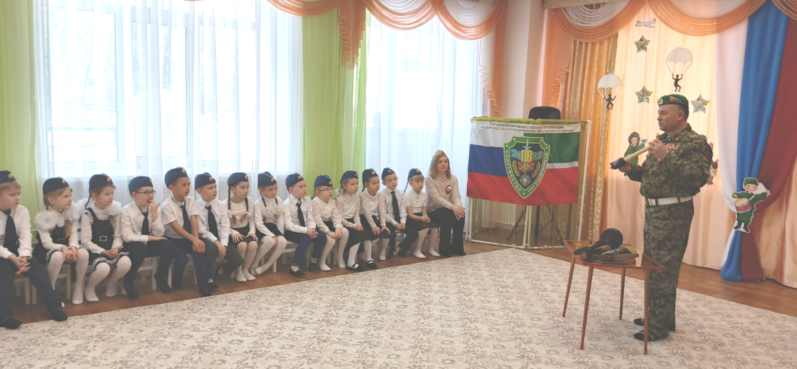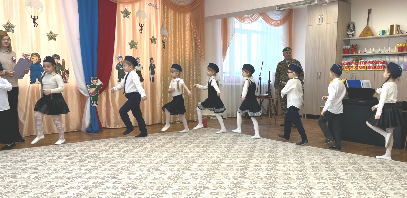 Сегодня прошло мероприятие, посвященное Дню Защитника Отечества - "Смотр строя и песни". Участниками стали воспитанники подготовительной к школе и старшей групп. На праздник был приглашен Сунюков Камиль Олмасович, участник боевых действий на территории Афганистана и Таджикистана. Целями мероприятия стали - развитие нравственно-патриотических качеств у дошкольников, воспитание уважения к старшему поколению, чувства гордости за свою Родину.