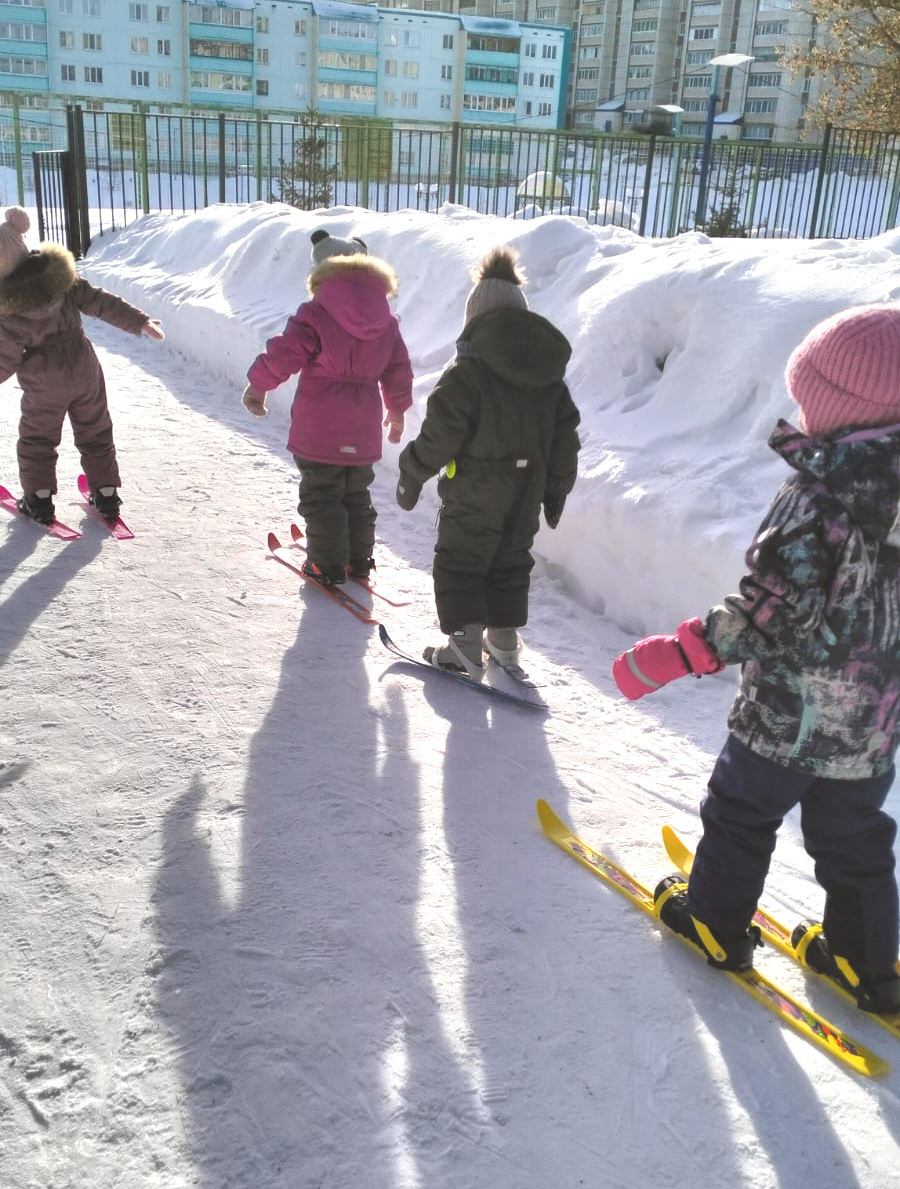 Катание на лыжах входит в программу реализации ВФСК ГТО в детских садах. В зимний период в детском саду проводится образовательная деятельность по лыжной подготовке. Такие занятия помогают расширить двигательный опыт детей, совершенствовать навыки в основных движениях, развить ловкость, быстроту и выносливость.