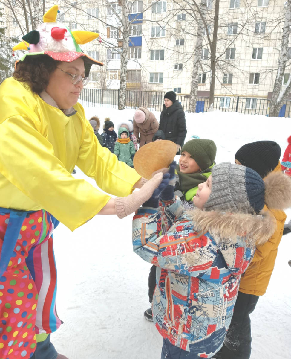 26 февраля дети всех групп стали участниками проводов Зимы. Весело провели время с ряжеными - Скоморохом, Бабой-Ягой и Весной. Водили хороводы, играли в игры. И конечно угощались вкусными блинами.