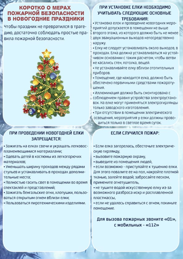Памятка по соблюдению мер пожарной безопасности в период новогодних и рождественских мероприятий