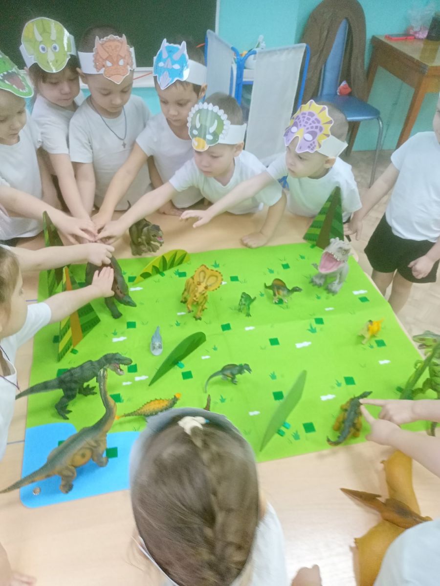 Для воспитанников средней группы было организовано и проведено интересное занятие по познавательному развитию. Ребята вместе с педагогом отправишлись отправились в удивительное путешествие, в мир динозавров.