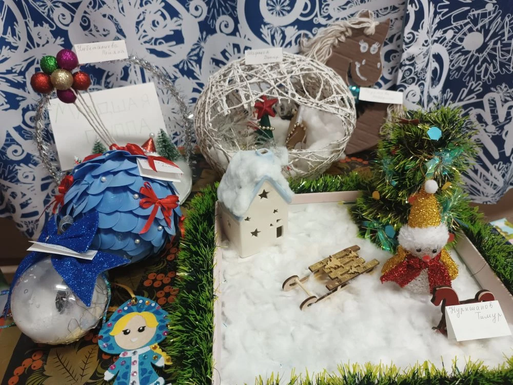 Вот такие замечательные поделки сделали наши воспитанники со своими родителями для мини - выставки "Кладовая Деда Мороза"