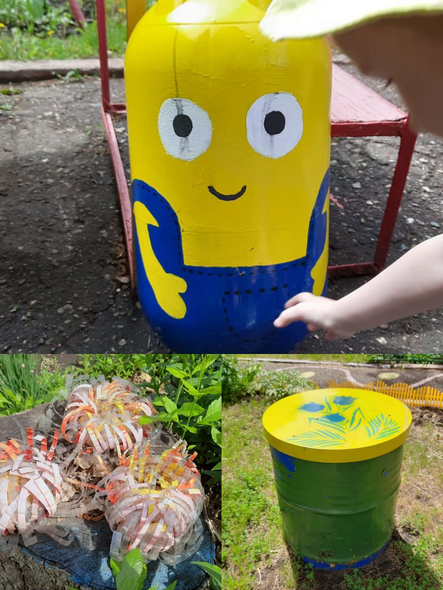 - «Выставка поделок из мусора и вторсырья». Цель: способствовать расширению экологических знаний, эстетического вкуса детей, привлечение детей к поиску новых конструктивных решений неординарными способами использовать вторичное сырье.