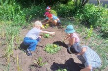 Совместный труд на огороде способствует формированию трудовых навыков и объединению детского коллектива, и конечно же ,труд на свежем воздухе способствует сохранению и укреплению здоровья ребенка. -