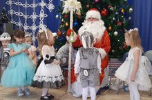 Новый Год - это самый волшебный, веселый праздник, которого дети ждут, веря в сказку и чудо… 28 и 29 декабря в нашем детском саду прошли новогодние утренники. Красиво украшенный зал, нарядная елка, подарки, Дед Мороз, Снегурочка и множество других сказочных персонажей ожидали детей дошкольного учреждения. Ребята погрузились в мир чудес, приключений, невероятных превращений и сюрпризов. Дошколята танцевали, пели песни, читали стихотворения, водили хороводы, с удовольствием участвовали в играх и конкурсах. Дети получили массу положительных эмоций и долгожданные подарки из рук Деда Мороза. -