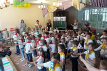 4 сентября 2017г. в ДОУ было проведено музыкальное развлечение "День знаний" для детей старшей и подготовительной групп. В ходе мероприятия ребята исполняли песни, танцевали и играли в игры. В гости к ним приходил сказочный персонаж Кот Леопольд. Он рассказал детям о празднике -1сентября,загадал загадки, поиграл с ними в игры "Собери портфель к школе", "Веселый счет". Дети были довольны, получили заряд праздничного настроения.