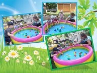 В жаркие, летние дни без таких игр не обойтись. Вода успокаивает, расслабляет, а в теплую погоду детям просто приятно поплескать в ней ладошки. Воспитанники играли в игры: «Поймай рыбку», Цветные мячики», «Достань игрушку со дна», «Купание кукол» и т.д. Дети с большой радостью играли в предложенные воспитателем игры. Малыши всегда ждут нового дня, новых прогулок и новых игр от любимого воспитателя.