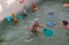- Профилактика нарушений осанки и плоскостопия: подъёмная сила воды снижает давление на позвоночник, а ритмичные движения ног укрепляют тазовый пояс и стопы.
