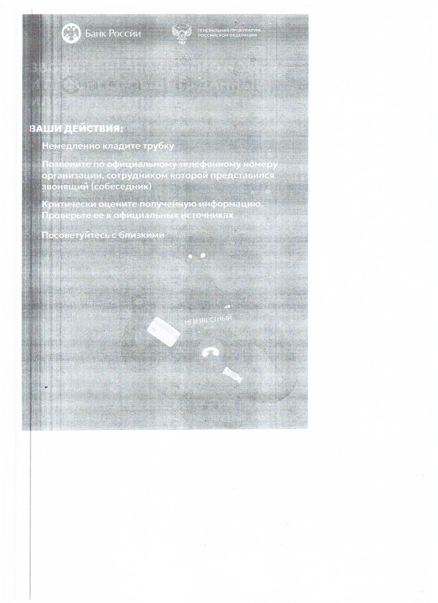 Ввиду возрастания угроз преступных посягательств Генеральной прокуратурой Российской Федерации совместно с Банком России разработаны цифровые плакаты в целях повышения уровня информированности населения о действиях лиц, вводящих в заблуждение в целях хищения денежных средств.