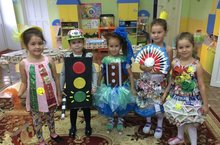 В детском саду прошел конкурс «Детям- чистый город с безопасным движением!», родители совместно с детьми представили необычные костюмы из бросового материалы со светоотражающими элементами.
