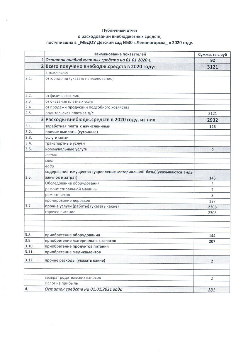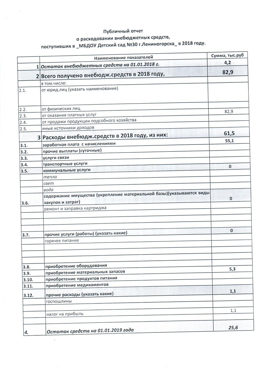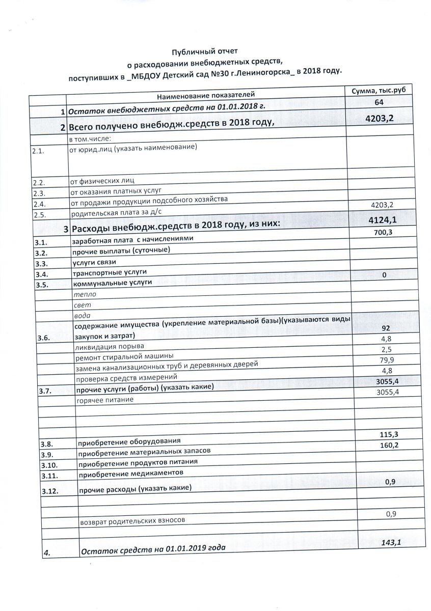 Публичный отчет о расходовании внебюджетных средств