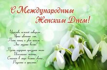 Поздравляю с праздником весны! Пусть жизнь всегда будет наполнена ароматами цветущих цветов, плодами хороших дел и гармонией с окружающим миром. Пусть рядышком по жизни шагают счастье, благополучие и везение! С днем 8 марта!