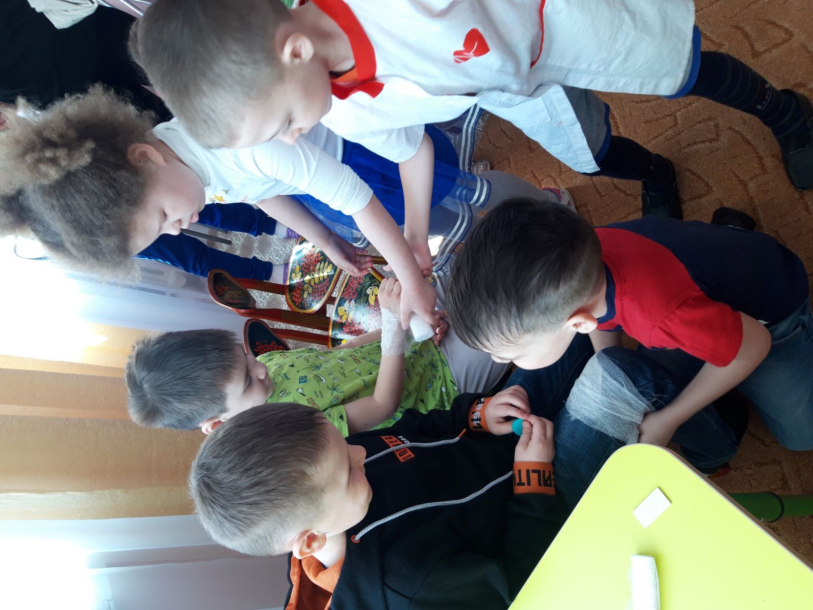 Кече төркем тәрбияләнүчеләренең милли составын исәпкә алып, кызыклы әкиятләр сайланылды: рус халык әкияте - «Курочка Ряба » һәм татар халык әкияте- “Аю белән Бабай”