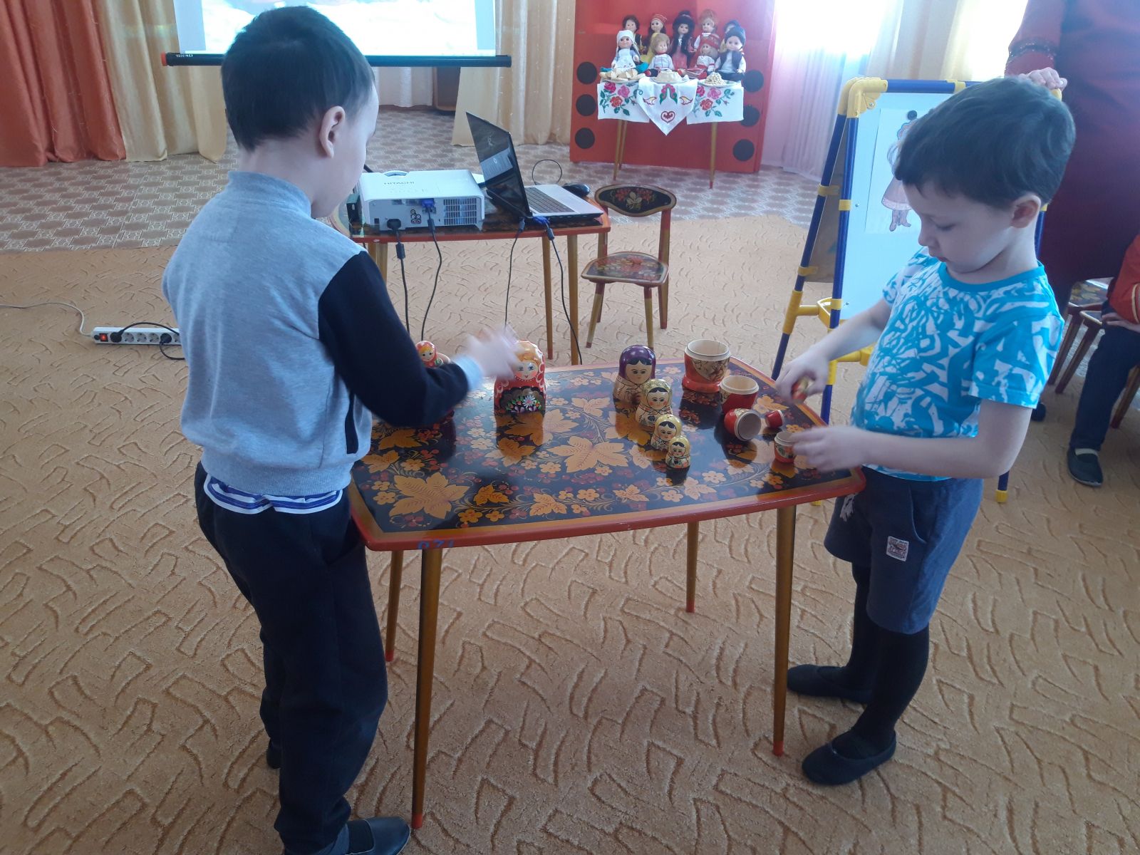 Татар теле тәрбиячесе Зиганшина А.Р. балаларга бәйрәм турында, аның тарихы, безнең республикада яшәүче халыклар һәм бу халыклар сөйли торган телләр турында сөйләде. Тәрбияләнүчеләр белән әңгәмәдә , милли телгә сакчыл карарга, гореф-гадәтләрне хөрмәт итәргә кирәк икәнен билгеләп үтте. Педагог балаларны «туган тел» төшенчәсе белән таныштырды, ни өчен аны туган тел дип атауларын аңлатты, Һәр кеше тормышында туган телнең әһәмияте турында сөйләде.