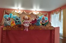 Когда нет возможности вывезти детей в настоящий театр – театр сам может прийти к вам в гости. Вот и наш музыкальный зал детского сада, благодаря артистам - воспитателям ненадолго превратился в зрительный зал кукольного театра для детей младшего возраста. Юным зрителям была показана постановка «Репка на новый лад». Ребята, затаив дыхание смотрели представление. Яркие куклы, красивая веселая музыка и интересная история зачаровала наших детей. Они внимательно слушали и следили за действием кукольного спектакля, вместе с персонажами радовались, огорчались и веселились.
