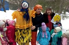 На главной сцене ведущие праздничной программы: Матрешка и скоморох Ваня - не давали детям скучать. И конечно в конце праздника блины - без них этот день представить невозможно.