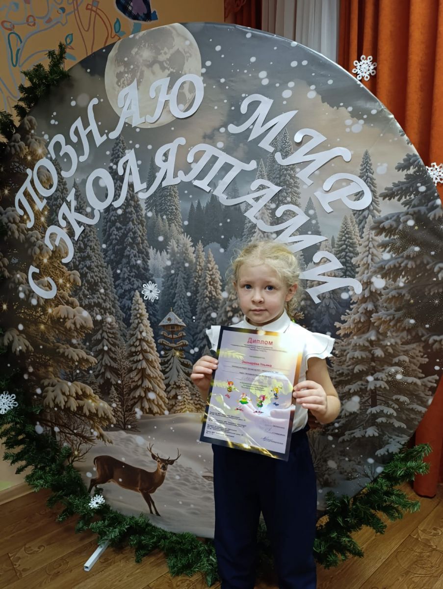 Поздравляем нашу воспитанницу, Звонарёву Ульяну, с 2-м местом в муниципальной олимпиаде "Познаю мир с Эколятами"