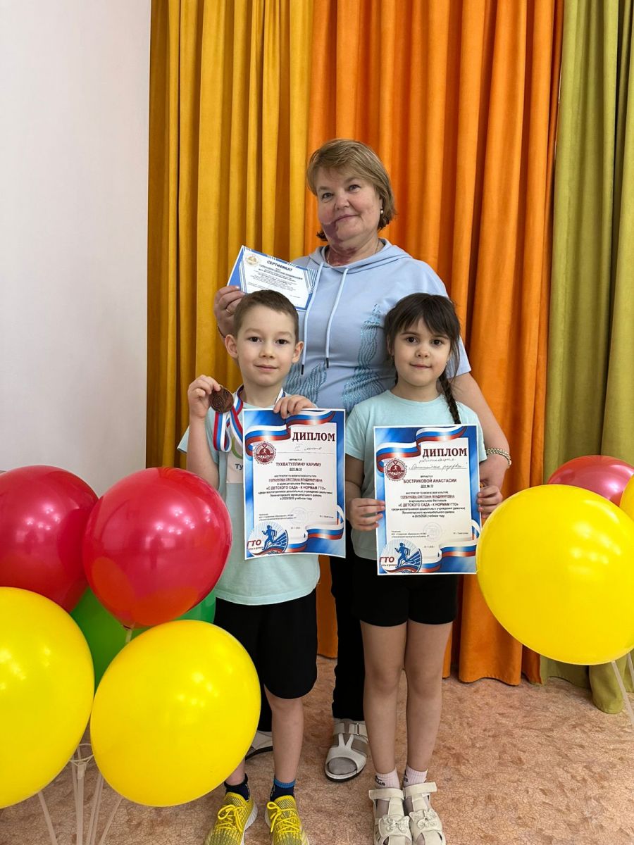 Наши воспитанники замечательно выступили в муниципальном Фестивале "С детского сада - к нормам ГТО" среди воспитанников дошкольных учреждений Лениногорского муниципального района: Тухватуллин Карим - 3 место, Бострикова Анастасия - номинация "Олимпийский резерв". От всей души поздравляем детей за достигнутые результаты и педагогов: Светлану Владимировну, Мариану Минлияновну и Ангелину Александровну, за подготовку детей к соревнованию!